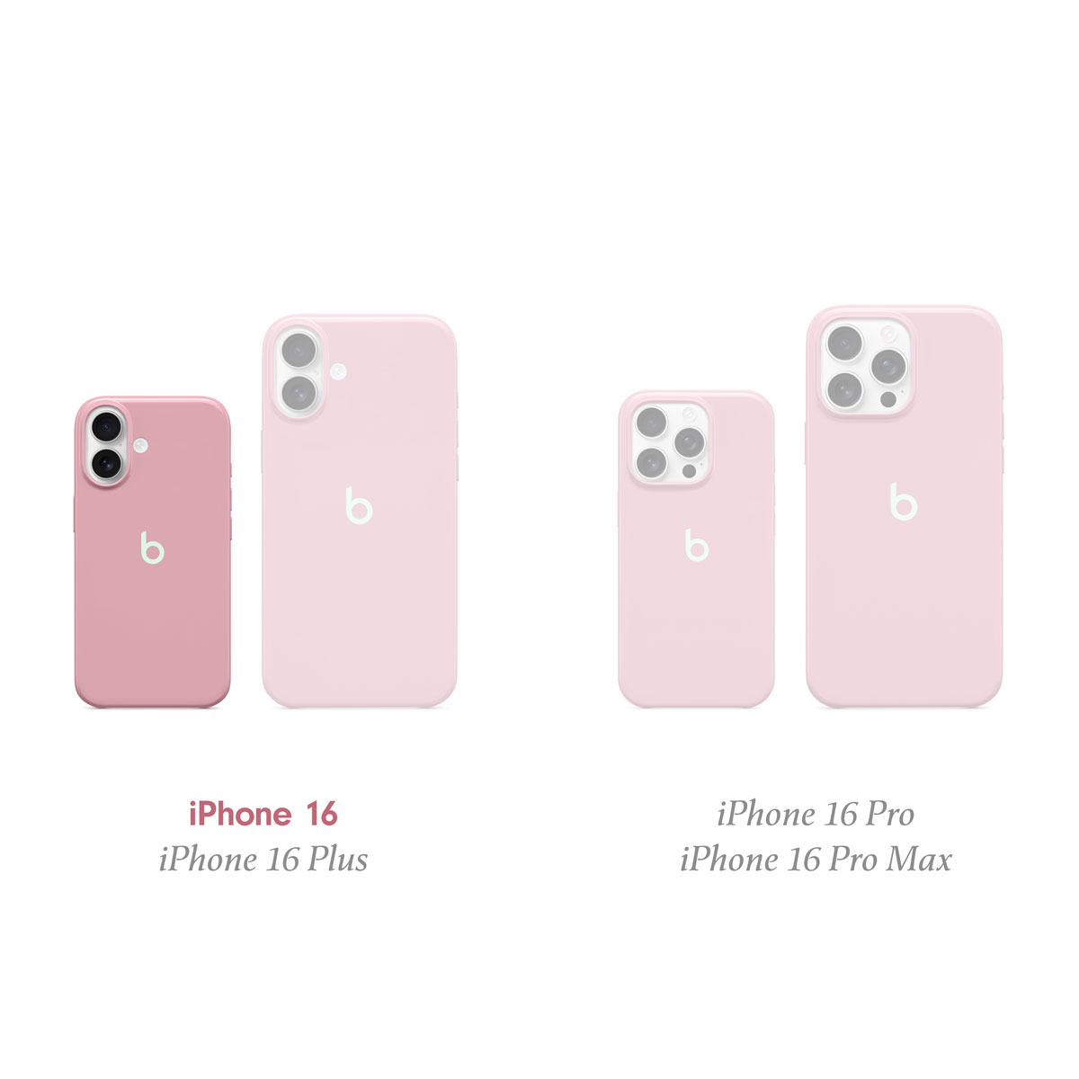 The Beats iPhone Case is available in four sizes to fit each of the iPhone 16 series models: